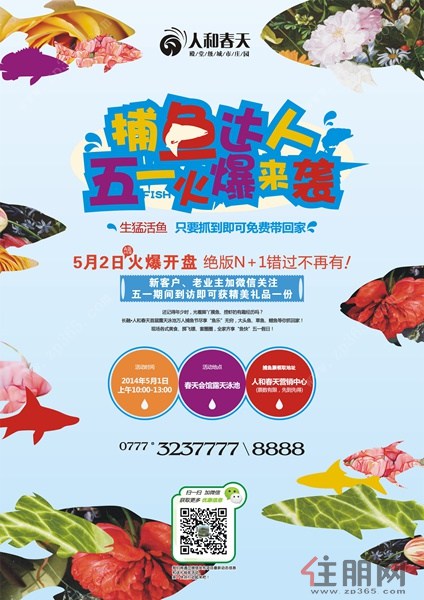 活动将在2014年5月1日上午10:00-13:00举办,现在到人和春天营销中心可以免费领取捕鱼券,票数有限,先到先得哦!